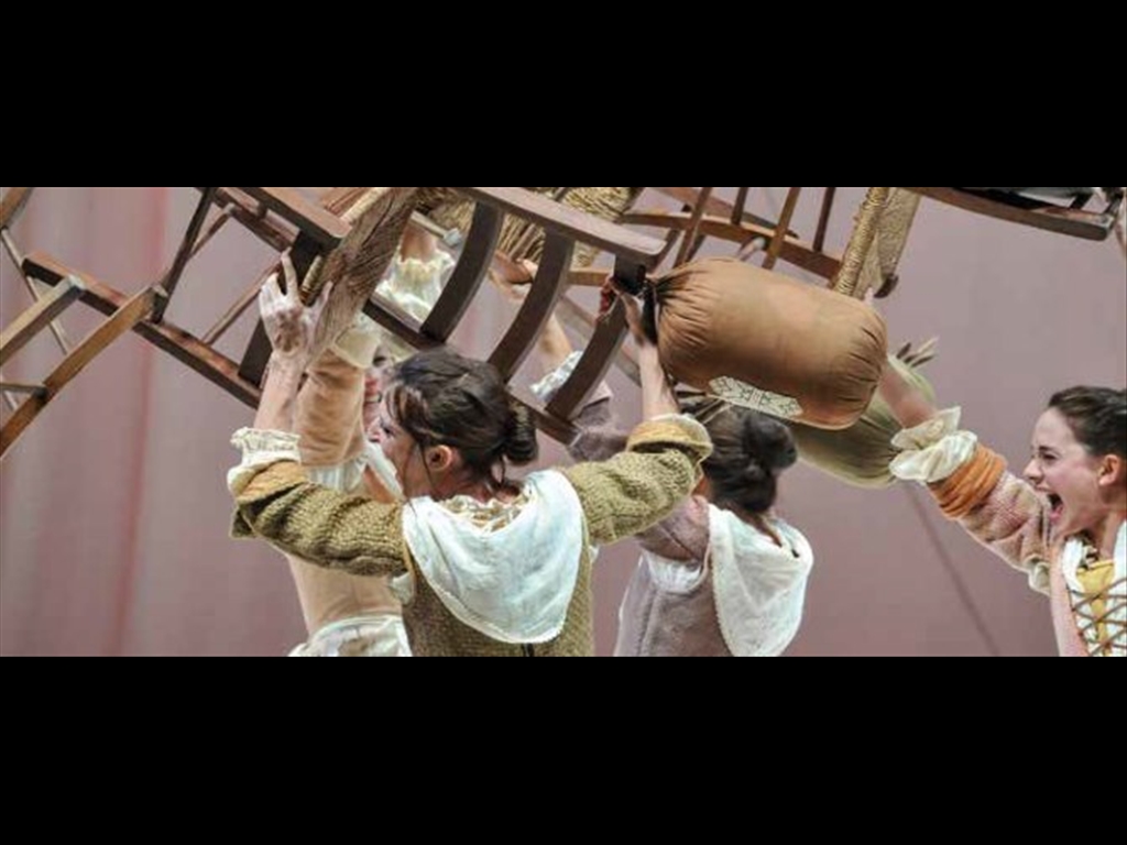 Lucietta: “Creature, cossa diséu de sto tempo?” Questa la prima battuta del capolavoro goldoniano, e da subito il tempo atmosferico e psicologico si intrecciano. In questo affresco di grande leggerezza e irresistibile divertimento, le donne delle “Baruffe” sono in attesa, hanno una decisa urgenza, quella di non far passare un altro inverno senza essersi maritate, i loro uomini sono pescatori, e presto o tardi il mare li chiamerà a sé. Il mondo femminile, fatto di famiglie e relazioni, di lavoro al merletto e di sogni d’amore, di attesa e di vitalità, è legato alla strada, luogo di ritrovo dei popolani, del commercio, delle gelosie e delle baruffe, è lì che si consuma la battaglia per tenere gli uomini ancorati alla terra ferma. Spettacolo corale, popolato da personaggi irresistibili e interpretato da un cast di grandi attori che danno corpo e voce a uomini e donne innocenti e rudi, esemplari imperfetti di un’umanità straordinaria.