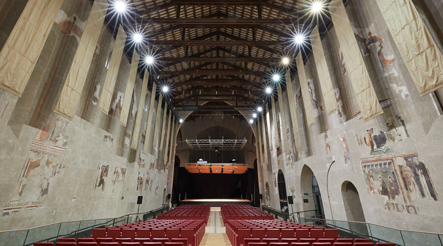 L’Auditorium San Domenico di Foligno, già Chiesa Conventuale dell’Ordine dei Predicatori (post 1285), è situata nell’omonima piazza.