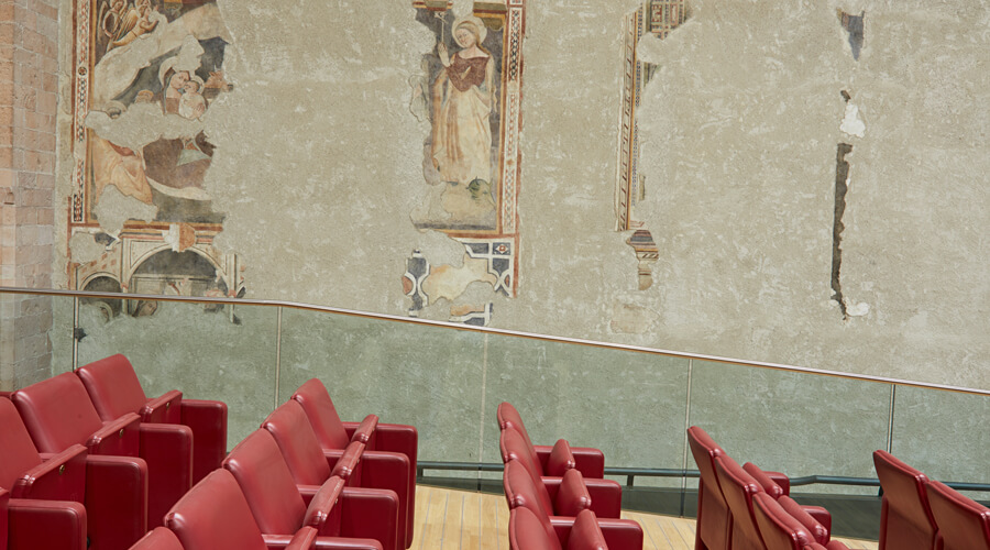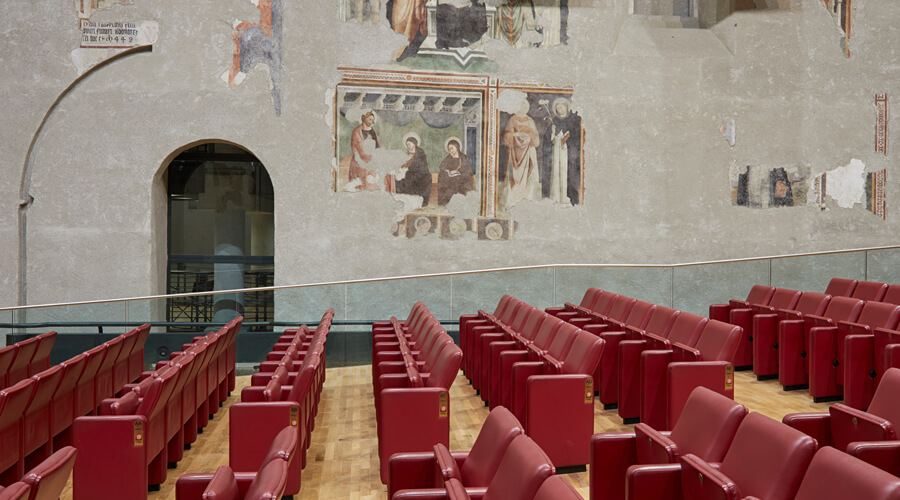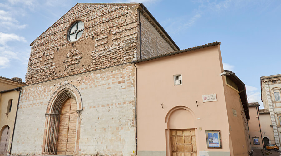 Passata a seguito delle demaniazioni ottocentesche in proprietà del Comune di Foligno, dopo un importante intervento di recupero, è stata trasformata in Auditorium. La facciata ha un bel portale ogivale, l’interno con copertura a capanna tipica delle chiese degli Ordini Mendicanti, conserva l’ossatura gotica. Articolati e frammentati gruppi di affreschi decorano la controfacciata, le pareti e la zona absidale. La decorazione pittorica costituisce una delle testimonianze più rilevanti nell’Italia centrale della pittura a cavallo tra Tre e Quattrocento. La struttura è particolarmente adatta per concerti, opere teatrali su pedana semplice e convegni. Può ospitare 535 spettatori nella sala centrale, dedicata all’architetto Franco Antonelli che ne ha curato il recupero, ed è dotata di un ridotto, di un foyer, una caffetteria ed una sala video di 96 posti. L’Auditorium è facilmente raggiungibile dalle principali direttrici viarie della città.