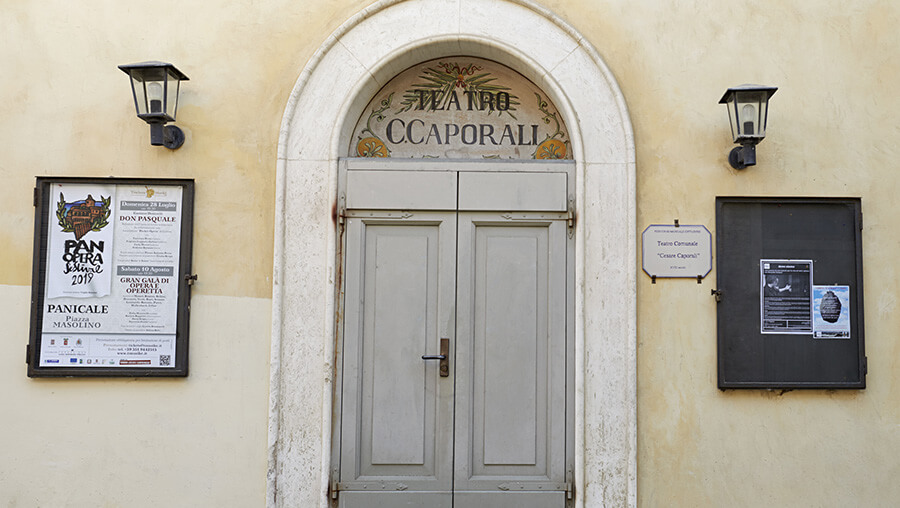 Il Teatrino venne riaperto al pubblico nel carnevale del 1858 con la denominazione di Teatro «Cesare Caporali», in onore del poeta giocoso nato a Panicale nel 1530 e deceduto a Castiglione del Lago nel 1601. Il Teatro piacque molto al celebre pittore Mariano Piervittori (in quel tempo stava dipingendo in Panicale, soprattutto nella Villa dei Mancini in Lemura), che volle contribuire ad abbellirlo donandogli nel 1869 il telone principale che rappresenta il famoso capitano Boldrino Paneri di Panicale, mentre riceve le chiavi della città di Perugia da lui liberata dall’assedio dei Brettoni comandati da Beltotto che dovevano assogettarla all’antipapa Clemente VII.