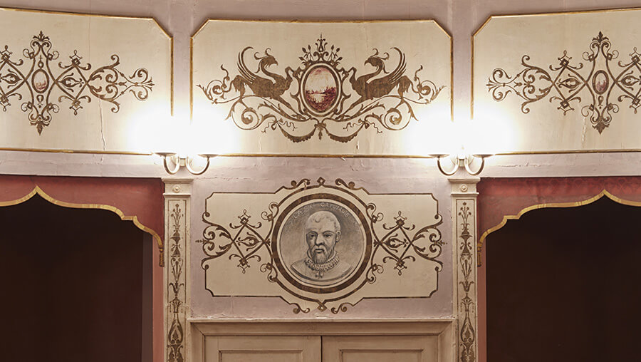 La sala rettangolare era inizialmente composta da un palcoscenico e da un palchettone sorretto da colonne basate sulla platea. In un secondo tempo il palchettone venne trasformato in 18 casini distribuiti in due ordini.